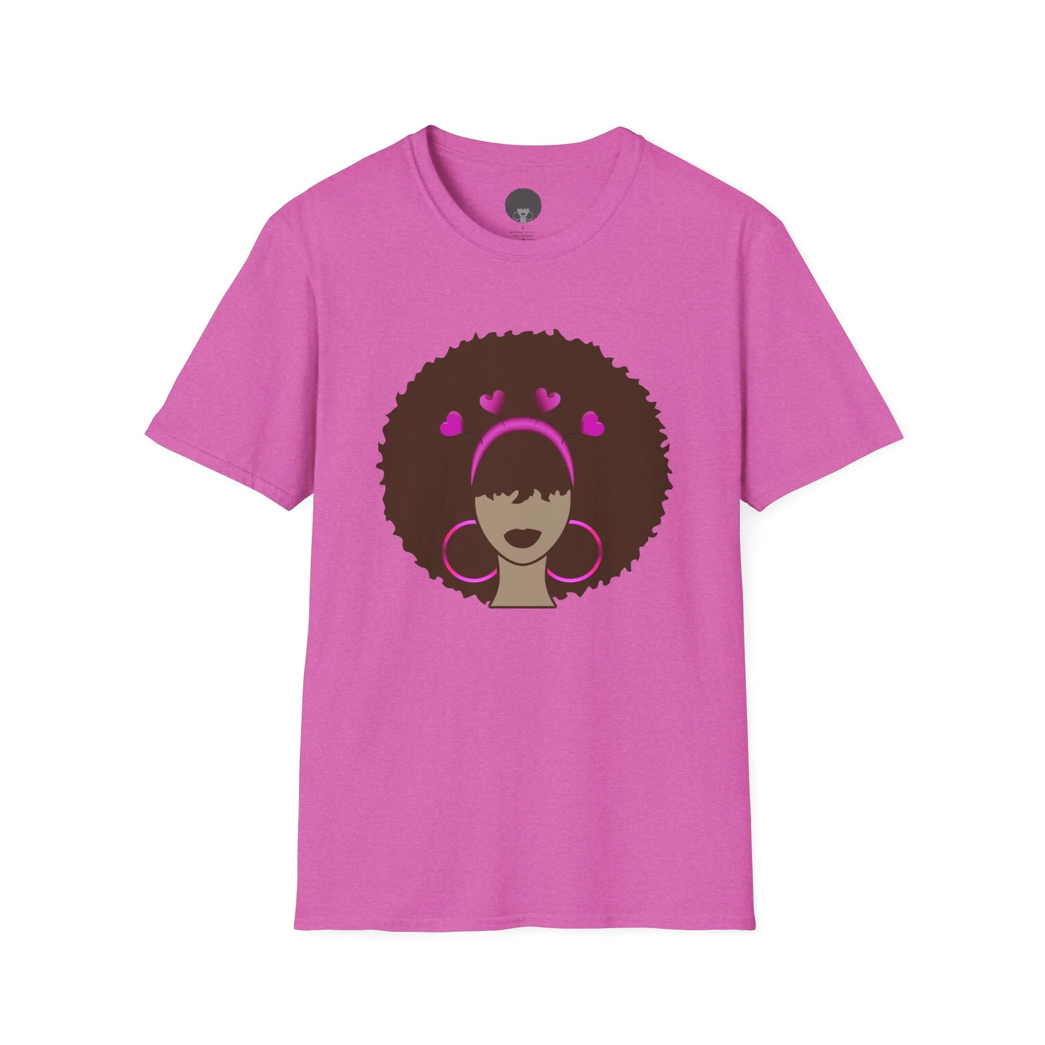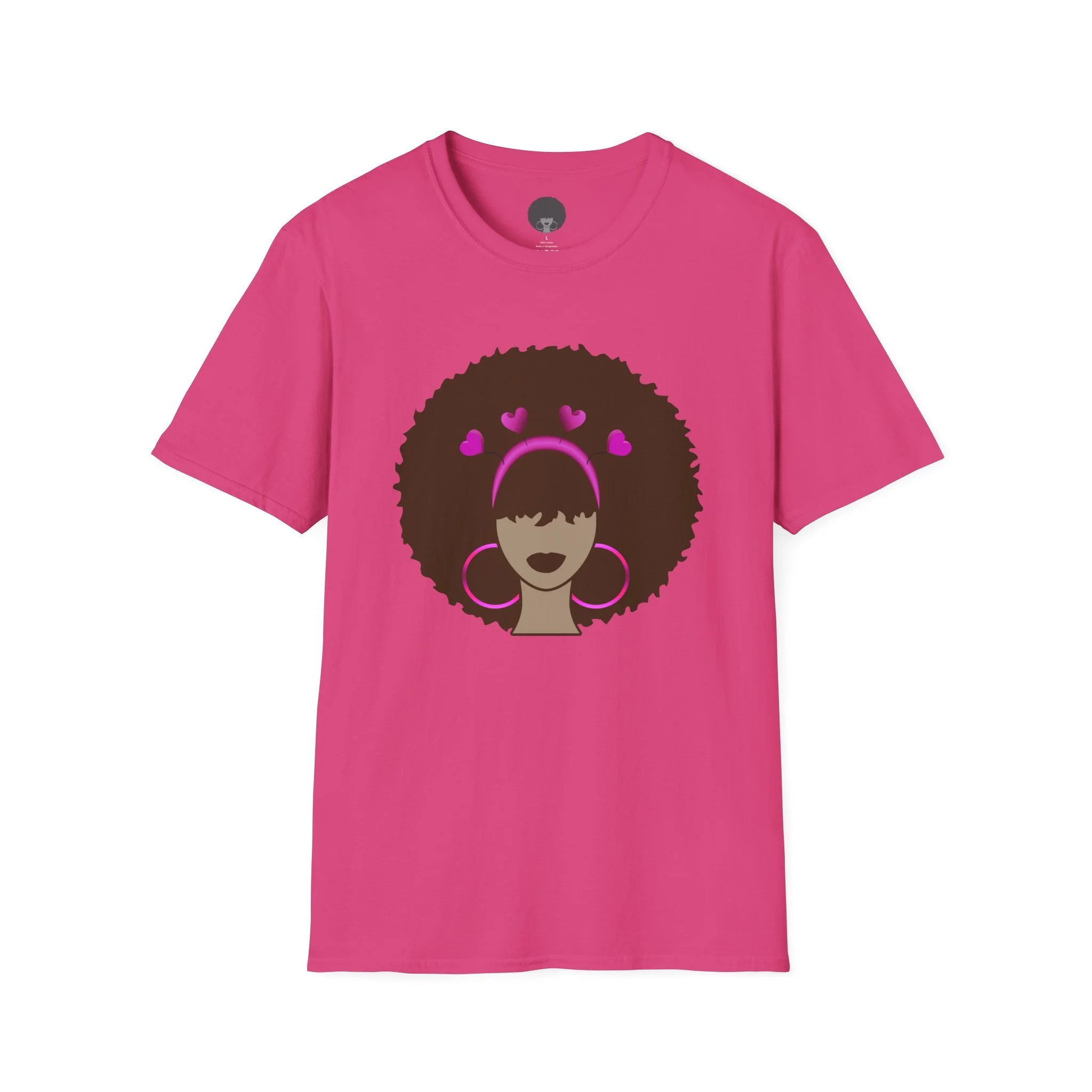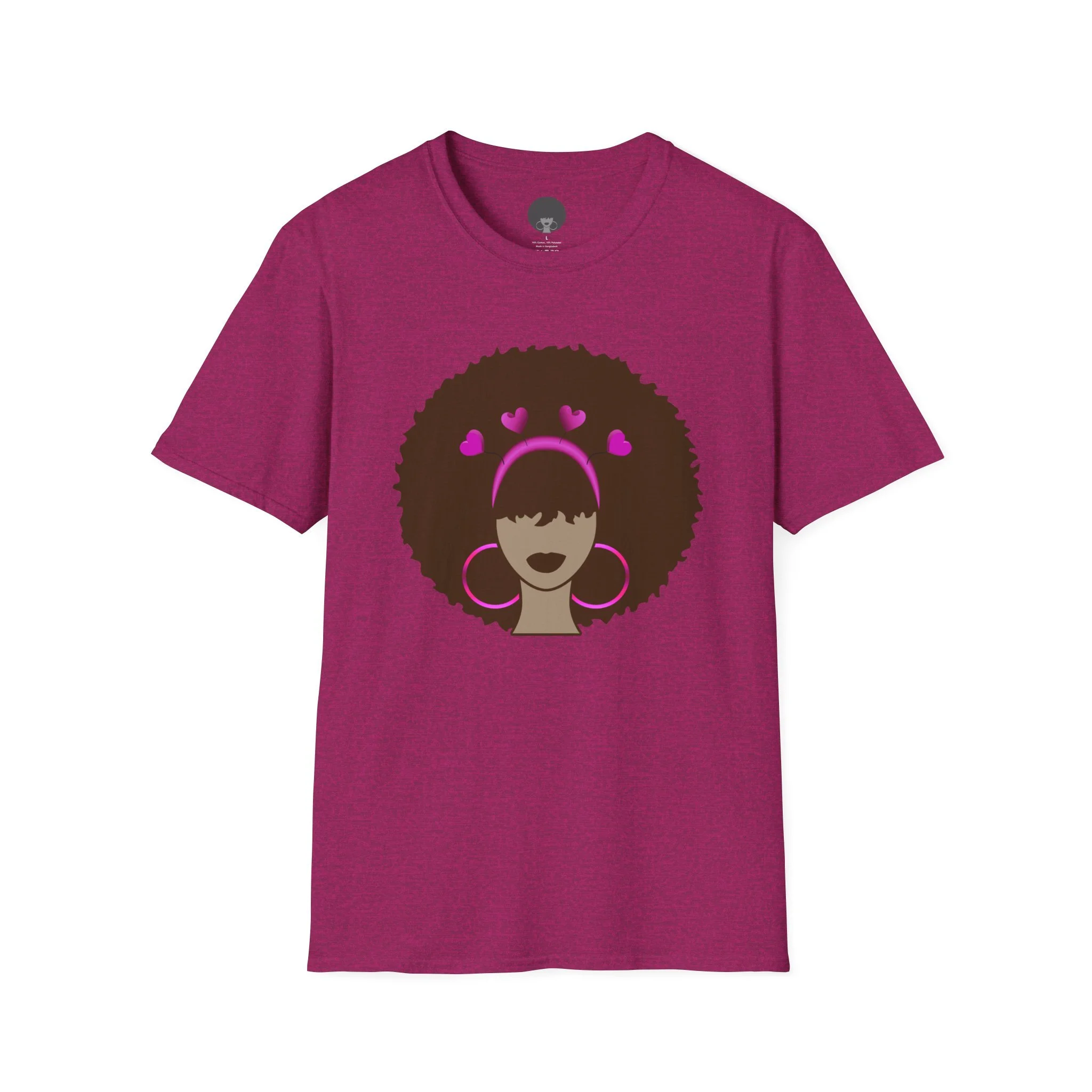 This soft cotton tee carries calm confidence. A bold Meli silhouette rests at the center, accented by bright pink hoops and heart details that feel like a personal badge of joy. The lightweight, ring‑spun cotton drapes comfortably and the classic crew neck gives a clean, wearable look that pairs with denim, skirts, or layered jackets. It’s the kind of shirt you reach for when you want to celebrate everyday self-love, show community pride, or add a playful pop of color to a simple outfit. Soft to the touch, responsibly sourced, and made to hold its shape wash after wash — it becomes part of the rotation you trust for relaxed weekends, meetups, and laid‑back city strolls.